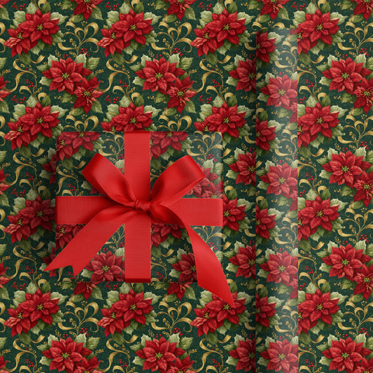 Crimson Blooms Dance Midnight Green