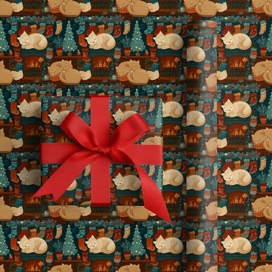 Fireplace Purrs Between Winter Stockings